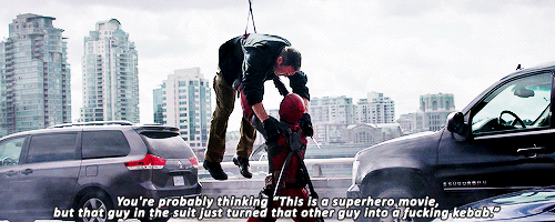 You can't really take your kids to see Deadpool. (oh my gosh the more I think about it...please don't) And when you watch Deadpool, you're contributing to our perpetually violent society. So why do we want this character so badly? He serves purposes that no other hero has been able to serve all at once. Sometimes a main character can get away with demonstrating some of the following feelgood outlets, but they always run the risk of losing their honor by doing so. Deadpool has nothing to loose, and honestly, it's refreshing. Why?