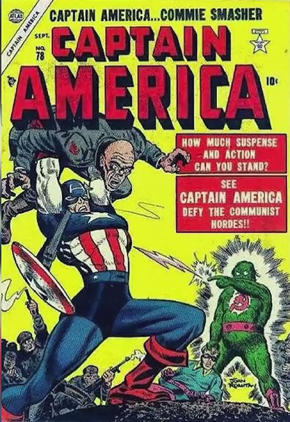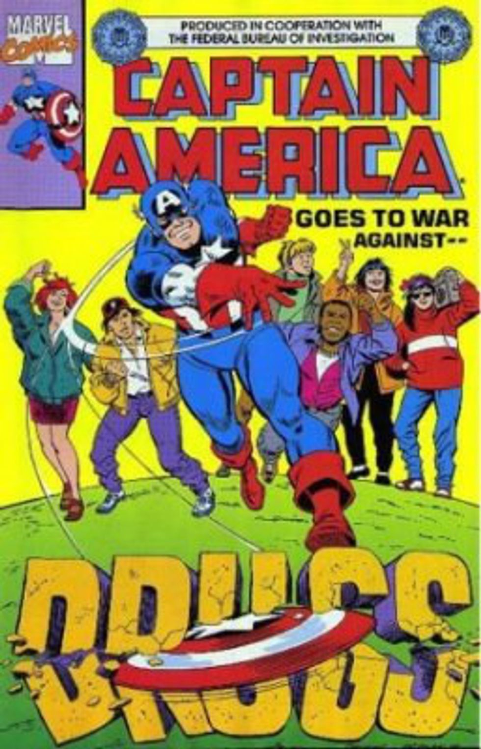 If we ask the same question about Captain America, another Marvel favorite, an answer isn't too hard to find. In the past, Cap comics stood up against fascism, Communism, and drugs. Some of the examples are pretty extravagant and funny...