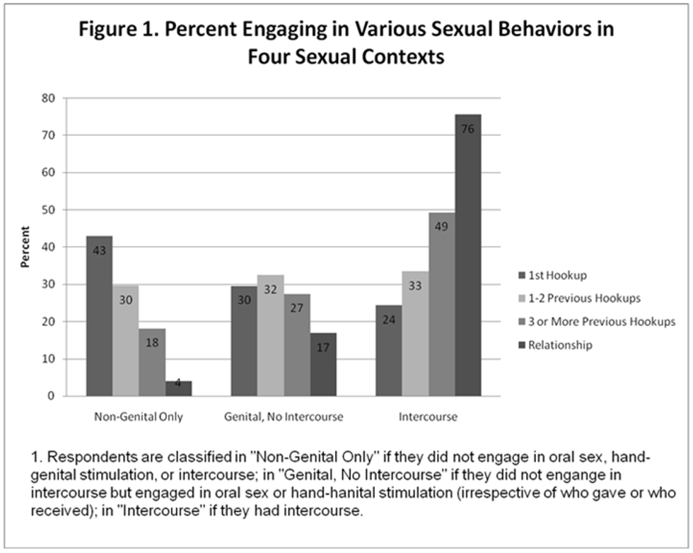 The image above shows that people who are just hooking up tend to "go all the way" on a regular basis versus people who are in relationships who do not. There is a deeper connection between the two partners and do other things besides have sex.