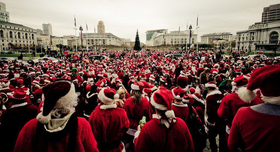 1. Wearing costumes in public. Such as Santa Con, because there's nothing better than dressing up as Santa Claus in the city.