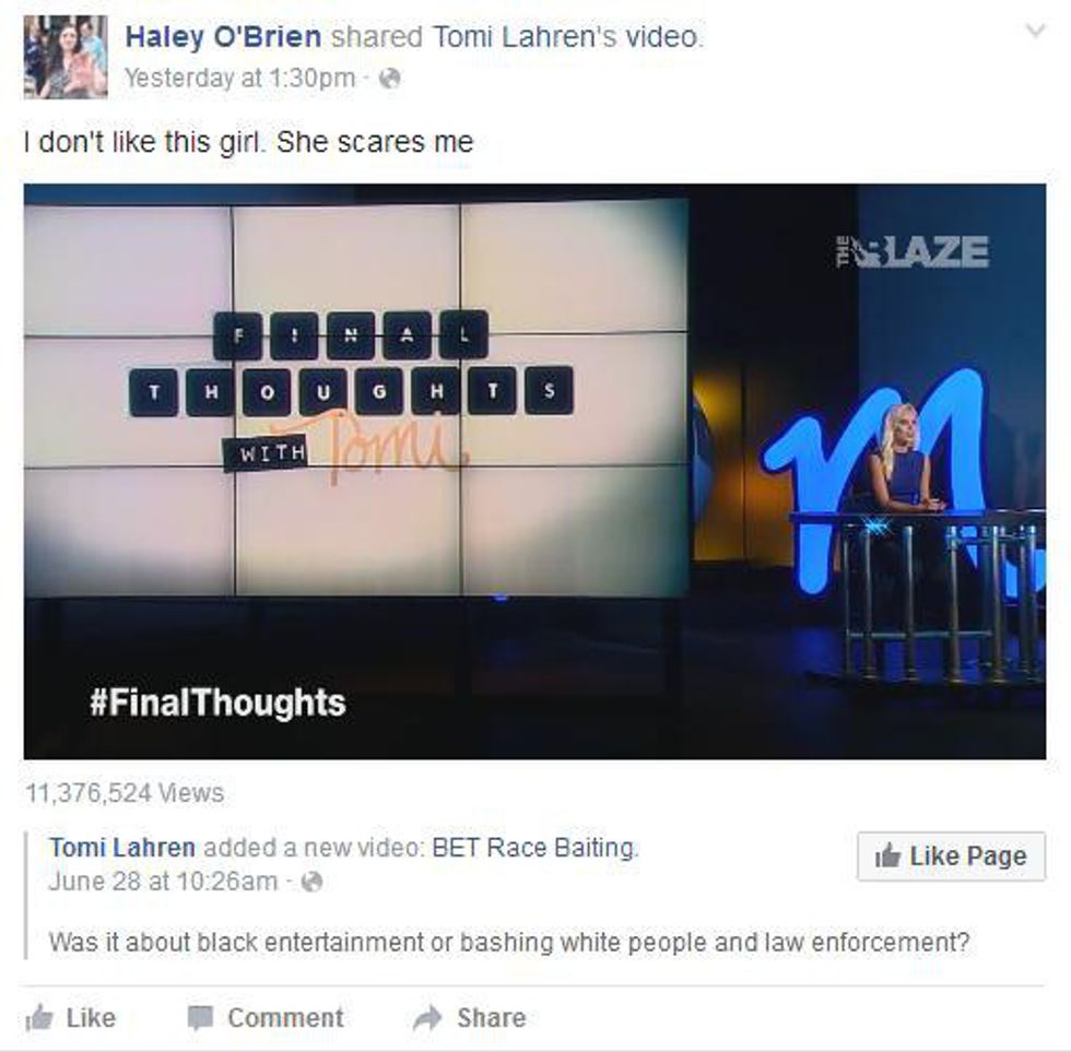It sparked my interest because I, too, dislike Tomi Lahren. Haley then elaborated why she dislikes her in the comments section.