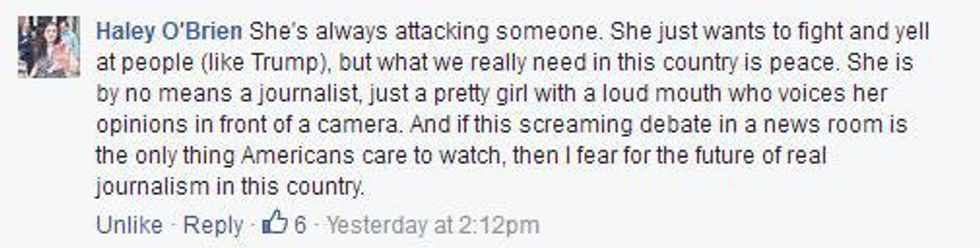 “Racism is alive and well and don't think for one second that many people (regardless of color) use it to their advantage. Especially in this country. To say that blacks don't is plain ignorance and sounds like left wing lunacy. Many young people think "Bernie" was the answer... wake up. He's not. Our choices are not good but before you vote- or spew against Republicans- educate yourselves.” - Unnamed woman on Facebook.