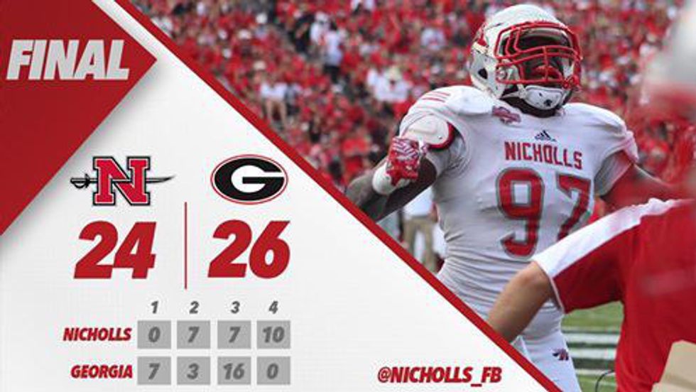 To all the Colonels out there, congratulations. Regardless of what the scoreboard said at the end, this is a win. It's a win for Thibodaux, a win for our campus and a win for the confidence of everyone. We showed what it means to be an underdog. We stood up to a SEC powerhouse and we contended. That's the difference. Our team didn't listen to all the hype and the doubt, they showed up and showed out.