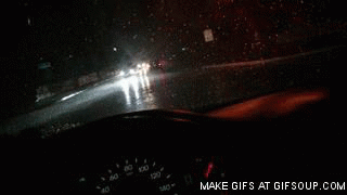 The rain does not mean the end of the world. First there is not need to turn on the emergency lights, not only is misleading but also illegal. It rains almost every week during non-hurricane season and everyday during the summer. I can tell there is water coming from the sky. Also, I understand you want to be careful becuase the road is slippery but I think you can drive faster than 10 miles per hour. On the other hand, there is not need to be a completely douche and drive like you own the road. Just remember everyone wants to get home as faster as you.