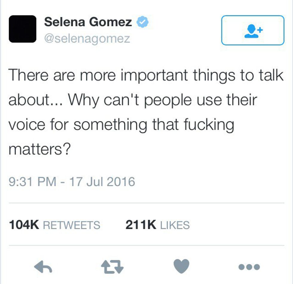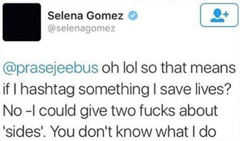Also, let me tell you another thing, believe or not Selena, but you said that this movement is just a big joke and that showing solidarity to African Americans isn't important. So newsflash Selena, it is. It is important that we have to fight against injustice and demand change and that's exactly what simply tweeting out #blacklivesmatter does.