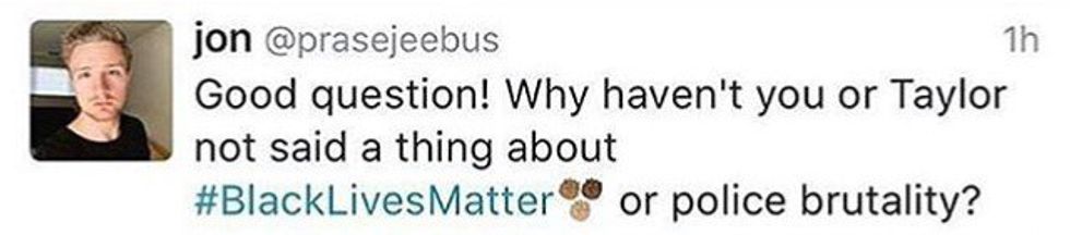 So now snake number 2, let me ask you this, how are the killings of innocent black men and women not important? How is police brutality not important? You said earlier that there are more important things to talk about, so is that particular topic not important, or do you just not care? Also, instead of giving this man just a catty and frankly rude response, you could've used the opportunity to actually talk about the issue and express remorse.