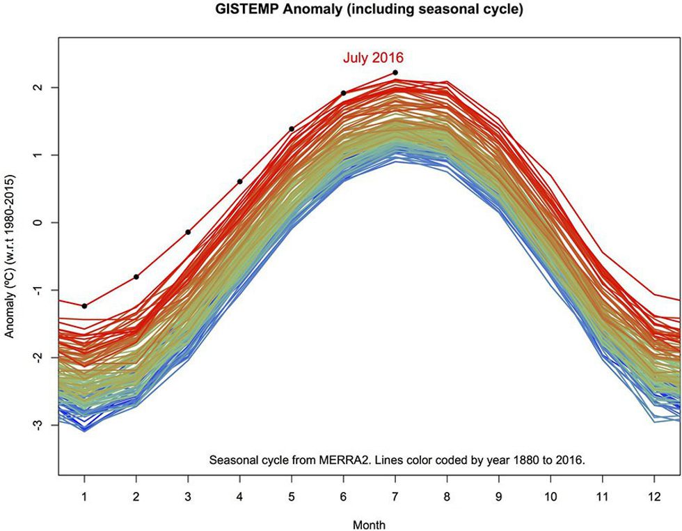 According to research done by NASA, 2016 has globally been the hottest year since NASA first began measuring and recording the temperature in 1880. This information is publicly available to the public if you wish to further analyze the evidence.
