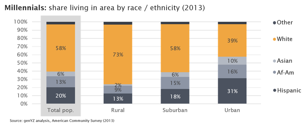 Most suburban and small-town populations are lived in by a majority. The majority being of white people or on the other hand, heavily segregated.