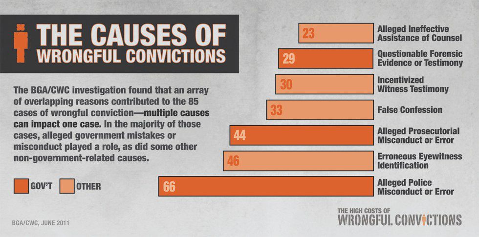 Since 1973, 156 wrongfully convicted death row inmates were exonerated by their states. The average time spent in prison before being exonerated is 11.3 years. Those against capital punishment cite this information to argue that the death sentence may lead to the loss of more innocent lives. Nationwide, at least one person is exonerated for every ten that are executed.