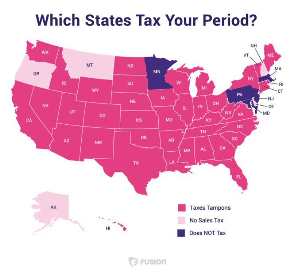 40 out of the 50 U.S. states impose some kind of tax on tampons, pads and other menstrual products, taxing them as luxury items rather than necessities.
