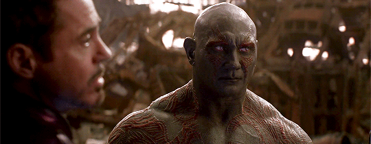 Drax is quite possibly the funniest of all the Guardians, so it was painful to think that everyone's favorite literalist was gone for good. For all his quirks, Drax still cared deeply for his friends and was a great fighter in defending the galaxy. I was crying a lot when he disappeared.