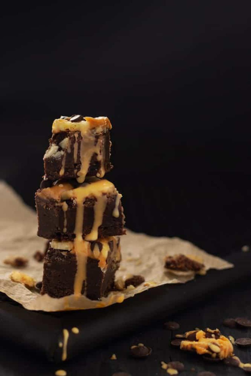 Here is a tasty healthy snack after a workout routine. The peanut butter is a good source of protein. It's topped with peanuts and caramel drizzle. This brownie is good for those who are on a diet and obviously does not have a nut allergy.