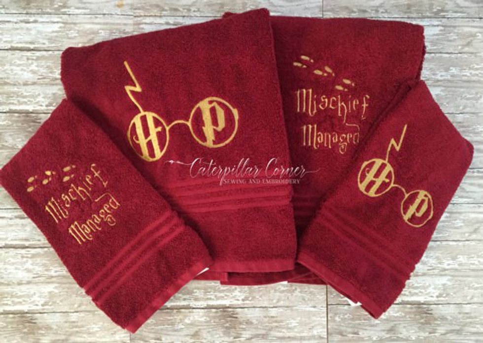 After scrubbing all that extra floo powder off yourself, dry off with some fluffy towels featuring your favorite Harry Potter logos. Walk down your hallway and let all those muggles know where your allegiance lies.
