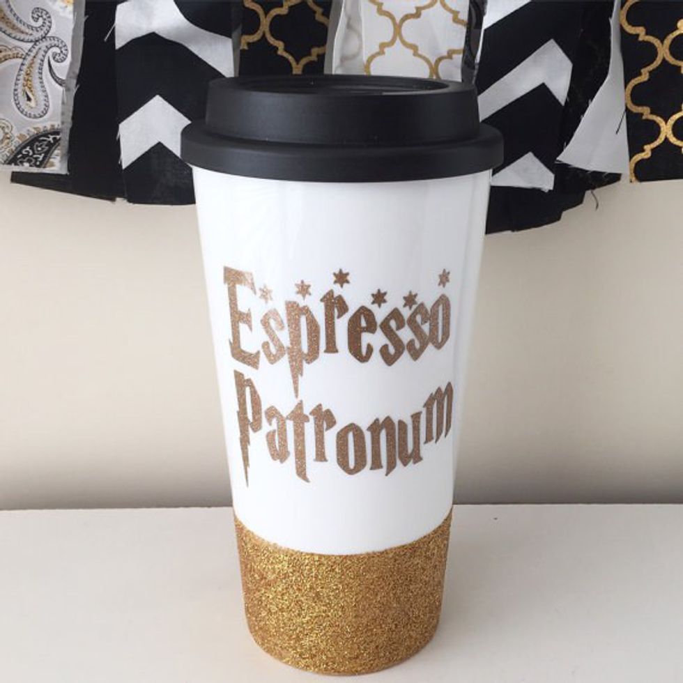 Take your coffee and your Potterhead pride on the go with this Harry Potter inspired travel mug. With glitter, coffee, and Harry Potter how could you possibly go wrong?