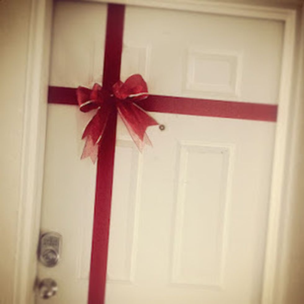Now, everyone is going to have fancy wreaths on their dorm doors, spice it up a bit by simply buying festive ribbon and a bow to achieve this look! Your door will show that your presence is the present!