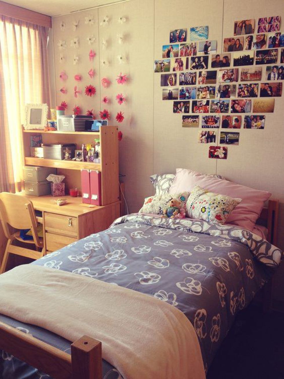 My most recent picture project I stole from Madi (my soon to be roomie, yay!), creating a heart shape on your wall out of pictures! Honestly you can do any shape, and it's a cute way to keep your memories close to you!