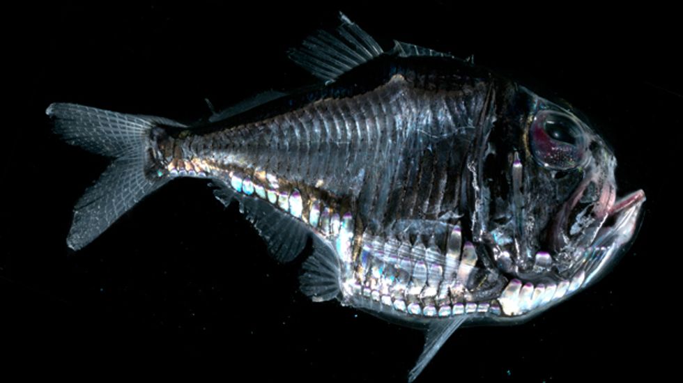 This fish is completely see through. So it's already pretty cool. But on top of that, it can also turn its eyes all the way around 360 degrees so it can see through itself to get a look at what's behind it. Who needs eyes in the back of its head when you're see-through?