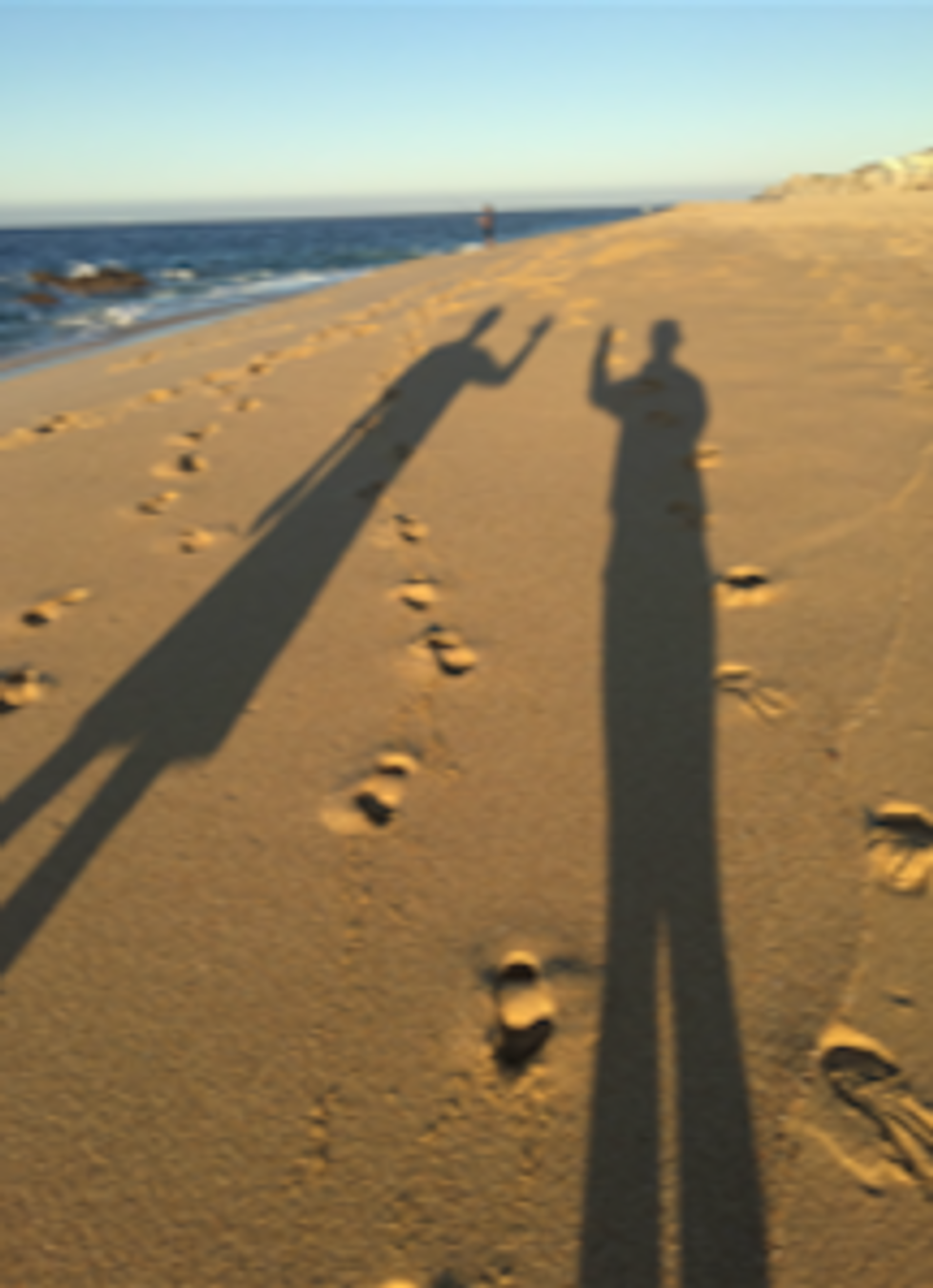 9. "This is me and my dad waving bye to our shadows. It was the last vacation before I went to college. It represents saying goodbye to all the bad memories in the past and getting ready to look forward to all the good things ahead."
