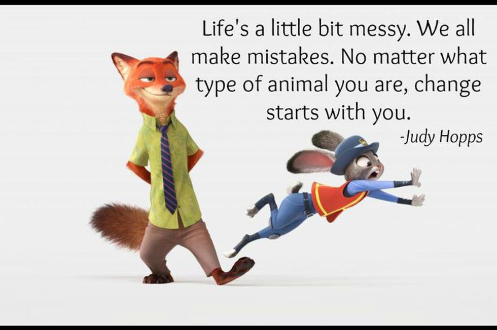 As a child born in the 90s, I was always hooked on all the Disney movies. There was just something unique about all the movies they produced, and they always had an amazing message behind it. It wasn't until this year that I stumbled upon watching Zootopia with my little brother. And boy was I hooked. Despite the cute animals that were featured in the film, I was truly amazed by the worldly message behind it. The following are just few of the certain quotes that stuck to me: