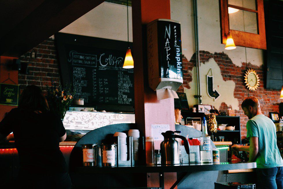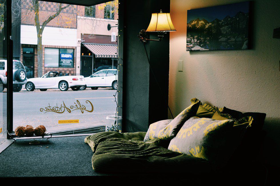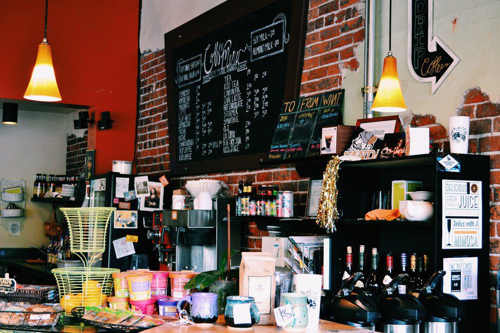 An artistic café; holds true to its translation. Quirky and homey. Stepping into this coffeehouse is like stepping into an exhibit. From paintings to custom-made furnishings, they display a variety of work done by local artists. The shop is decorated seasonally, which gives off an incredibly festive vibe that radiates to people simply passing by on the street. This is a truly inspiring location to place oneself; in hopes of awakening their creative senses or to simply help them get through their 10-page paper due in five hours. Along with the creative atmosphere, they serve a variety of delicious espresso options as well as delicious baked goods.