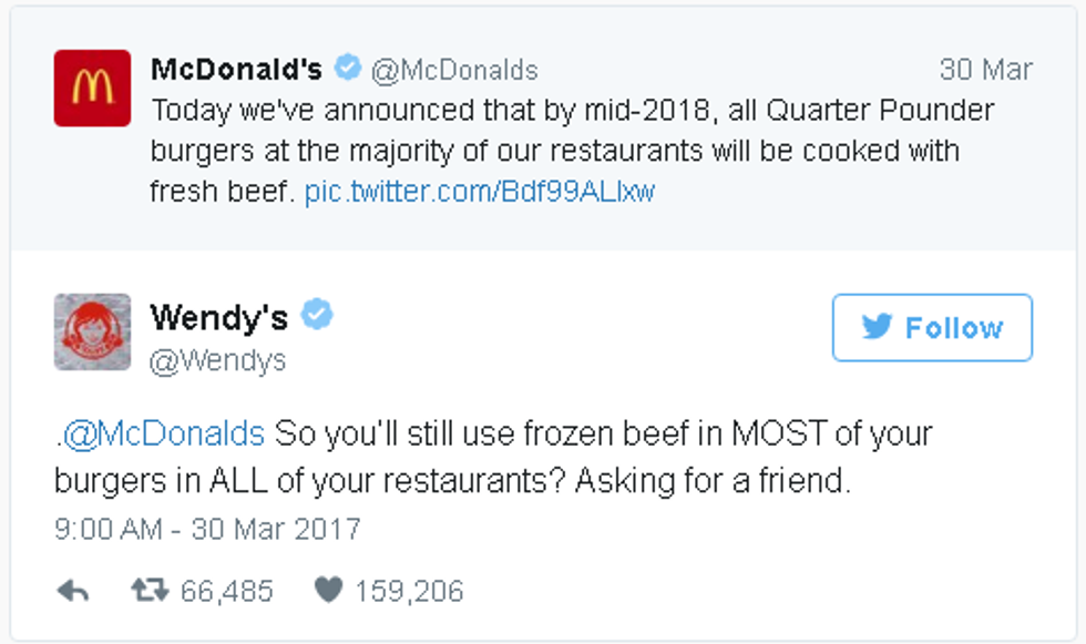 This tweet just burns McDonald's by using their own tweet against them. Now, we all know McDonald's doesn't use fresh beef, but this just gave us more proof then we could ever ask for.