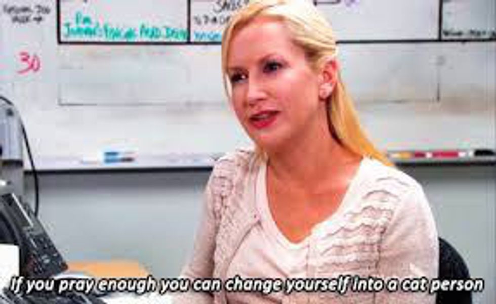 - 12. Angela- The cat-loving, judgmental b*tch. She dresses like a nun and loves nobody but her cats (and Dwight). Did you even know she has a son on the show? Probably not. Angela is just a fun sucker, but she definitely knows how to let loose in private (or in the elevators with Dwight). She’s not afraid to call out a slut when she sees one (cough, cough Jan). But I guess every office needs an Angela.