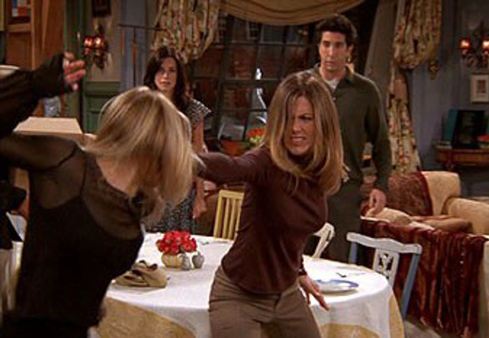 Brad Pitt is everything in this episode. (Ugh, RIP Brad and Jen. Ten years later and I'm still not over it). Pitt's guest appearance is probably the best one on the show, and he is actually perfect. He plays Will, an old buddy of Ross's who Rachel used to bully, back when he was 150 lbs. heavier. It turns out he and Ross started the "I Hate Rachel Green Club" and spread the rumor she was a hermaphrodite. Seeing this play out over the Thanksgiving dinner table is perfection and so high school. I love it.