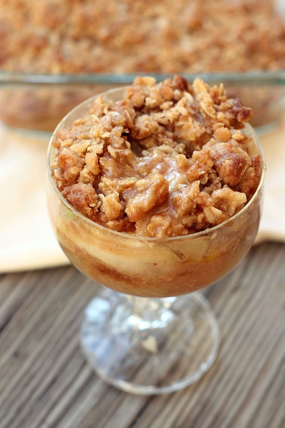 To make this recipe ahead of time: Make the apple filling, adding a tiny bit more lemon juice so the apples don't brown. Store the apple filling in an air-tight container, in the fridge, for up to one day. Make the crumble topping and put it in a separate zip lock bag, in the fridge. When ready to bake, remove from the fridge, and sprinkle the topping on top. Bake as directed.
