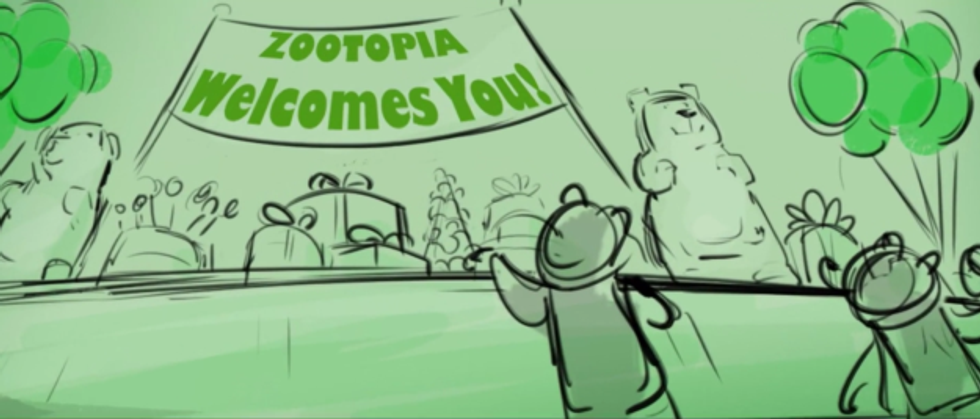 There is something about this clip that is worth speculating. The name, “The Taming Party”, has many meanings. A bear that was tamed is not a bear anymore because he loses his culture and identity. Moreover, when the father is handing the gift, he hesitated. He seems helpless. He knows that his son has to have the shock ring in order to be accepted by the society of "Zootopia." But he also knows that once he wear the shock collar on, he won't be able to have the taste of freedom anymore. No other animals will truly sees him as one of them because they used to be aggressive animals. Saying the words from the "Zootopia's" pledge, the father knows the shock collar is not a sign of honor, as they say, but a chain and a social tag. The baby bear is also confused. He's too young to understand the sophisticated world and prejudice. He still innocently thinks the collar is a sign of being a “bear”…