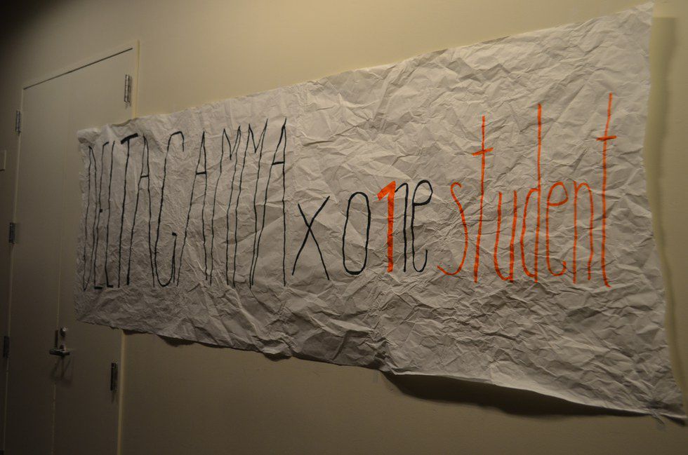 In November, Delta Gamma Eta Phi at NYU hosted an art show on campus in support of One Student, a non-profit organization working to engage students in creating social changes to reduce sexual violence. Members of Delta Gamma created thought provoking visual and performance pieces to start the discussion on how we can make our college campuses safer.