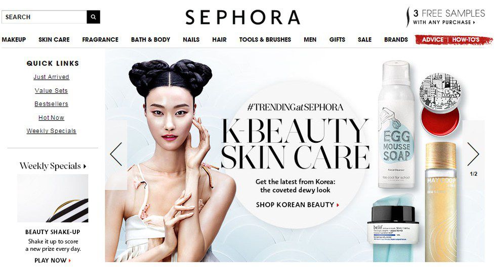 In addition, even the moniker “K-Beauty” and its use as a category reveals problematic attitudes about the way Korean beauty products are viewed by western demographics. Despite the fact that Korean beauty spans a hugely diverse array of products and brands, American stores like Sephora, Ulta Beauty, and Urban Outfitters still stock all Korean beauty products in its own advertised section, usually titled “K-Beauty” or some variation, without regard for the differences in types of K-beauty products. Advertisements tend to play up the foreign origins of these beauty products rather than explaining their benefits or how to use them. Meanwhile, many reviews, unboxing videos, and even articles by professional journalists constantly include non-Korean Asian products, such as SK-II, on lists specifying K-beauty products---revealing that the history of homogenizing Asian cultures can be exemplified through even something as mundane as beauty vlogging.