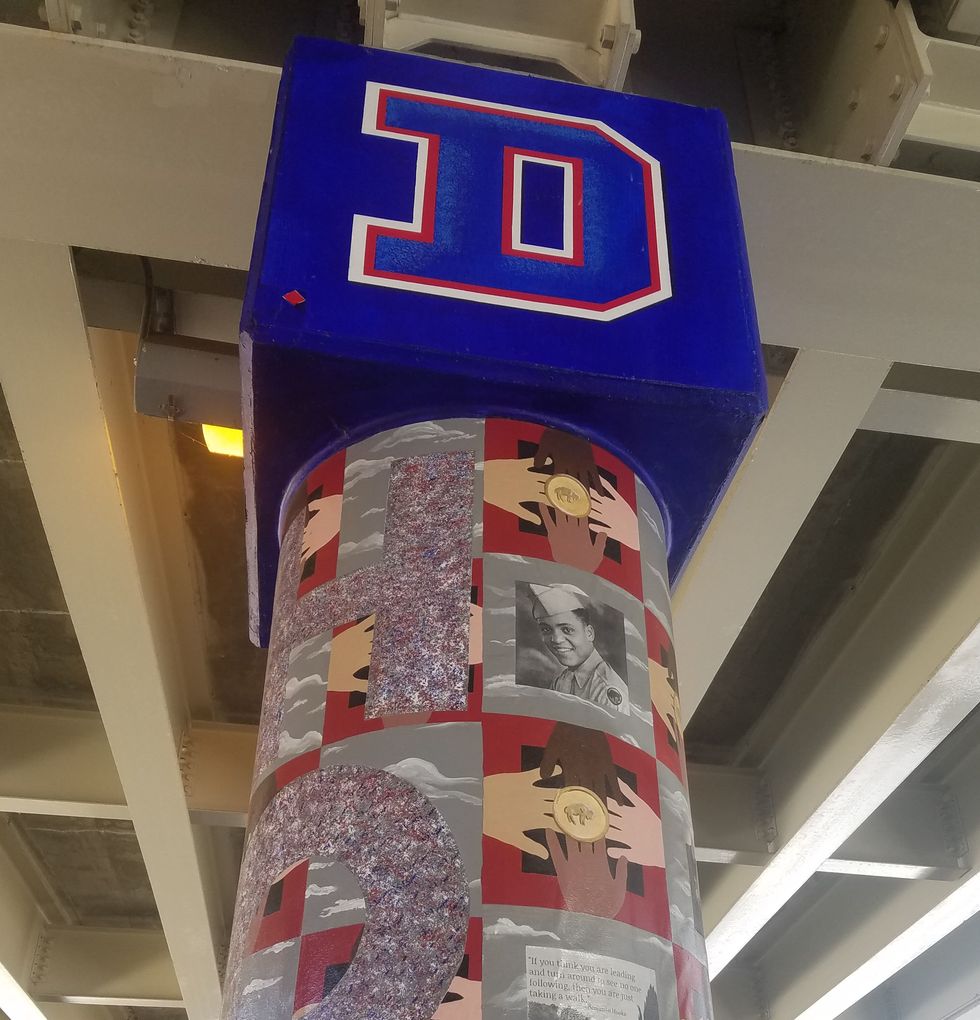 These painted pillars are found under the El tracks and Brother Mark Elder also painted these. The main point that Elder wanted to grasp is the history of DePaul's inclusion. The work is ongoing, with the goal of having all of the pillars painted.