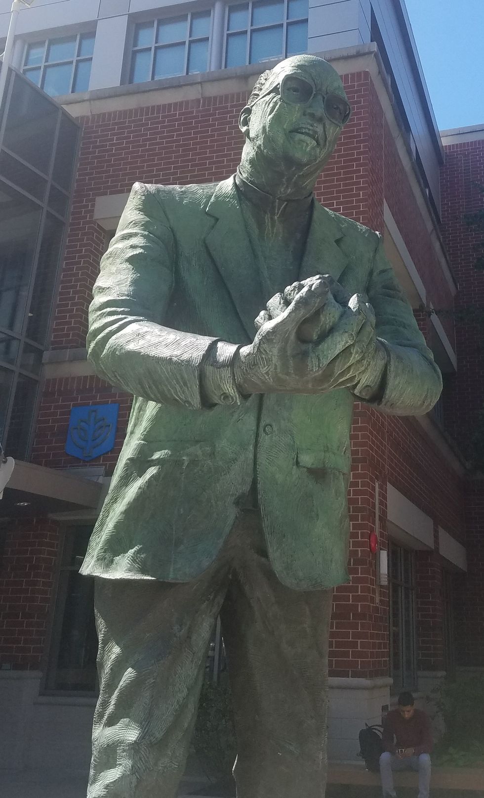 A DePaul alumni himself, John Joseph Egan unfortunately passed away in 2001. Father Egan was a Roman Catholic Priest. At DePaul, he was well known for promoting the Vincentian values. Father Egan will always question "What are you doing for justice?" This statue is located on the corner of Sheffield Avenue and Belden Avenue in front of the Student Center.