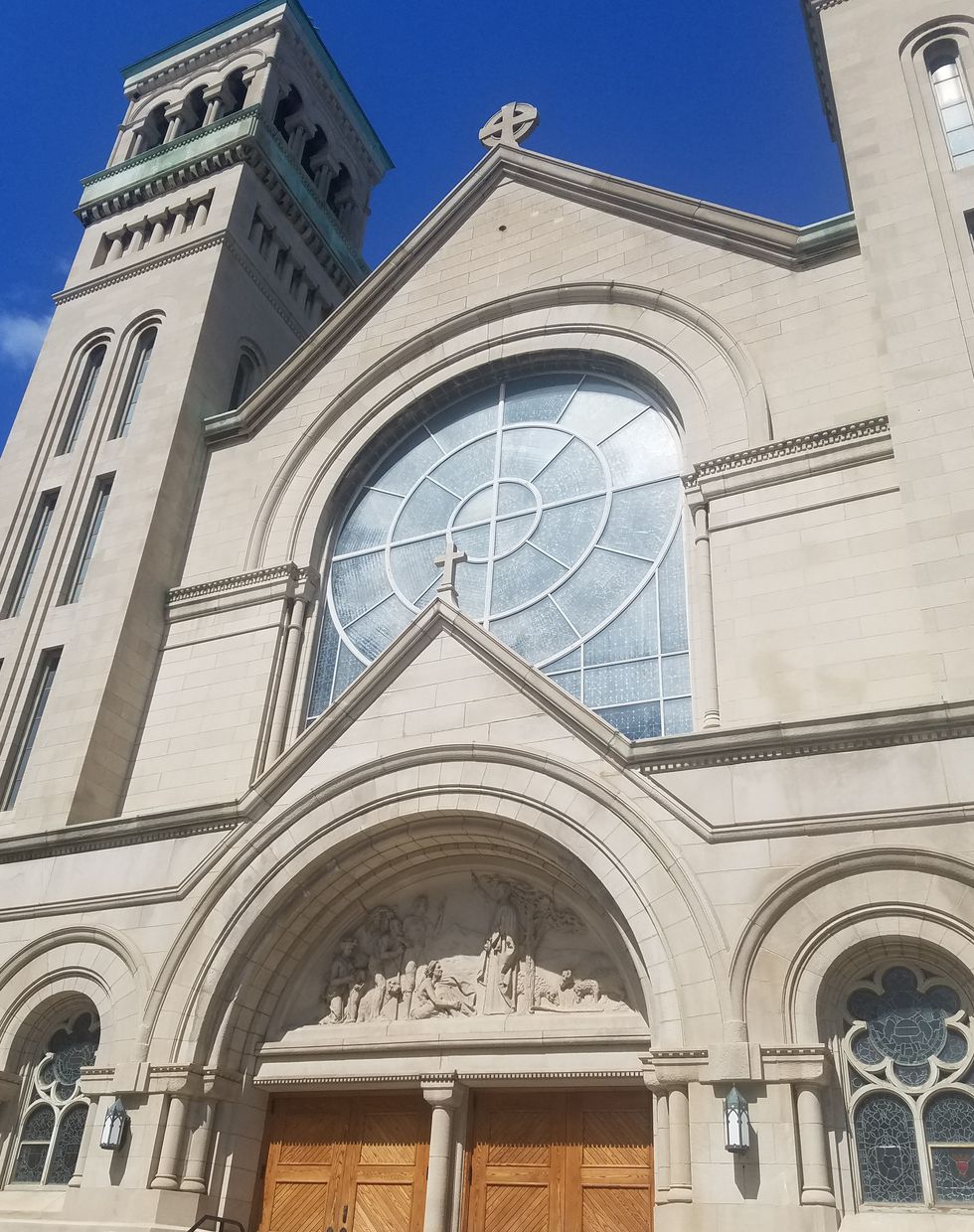 Founded in 1875 by Reverend Edward Smith, this church changed locations from the corner of Webster and Kenmore Avenue to Webster and Sheffield Avenue. On May 1, 1897, the new location of the church was founded. Student mass is held every Sunday night at 8:30 p.m. Also, inside the church is the Elizabeth Seton food pantry which is open six days a week that serves meals for people in need.