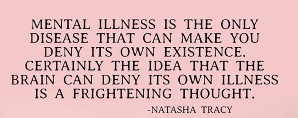 As Abby Loncar, the founder of The Grace Loncar Foundation, said, "A person who takes Advil has a headache, a person who takes insulin is diabetic, a person who takes mood stabilizers is bipolar, and a person who takes antidepressants is depressed. It is time we show the same compassion to the invisible illnesses of this world."