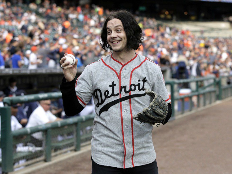 Jack White before throwing out the first pitch at a Detroit Tigers Game
