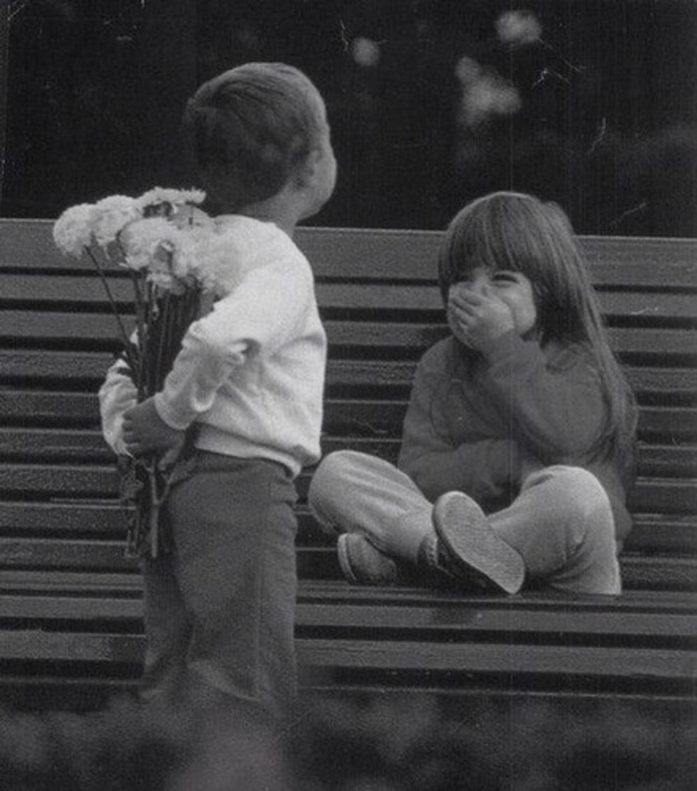 Confession time: On the playground, he kissed a beam of the swing set -- I proceeded to kiss the same beam. I guess you could consider that my first kiss (kissing is the exchange of germs, correct?)