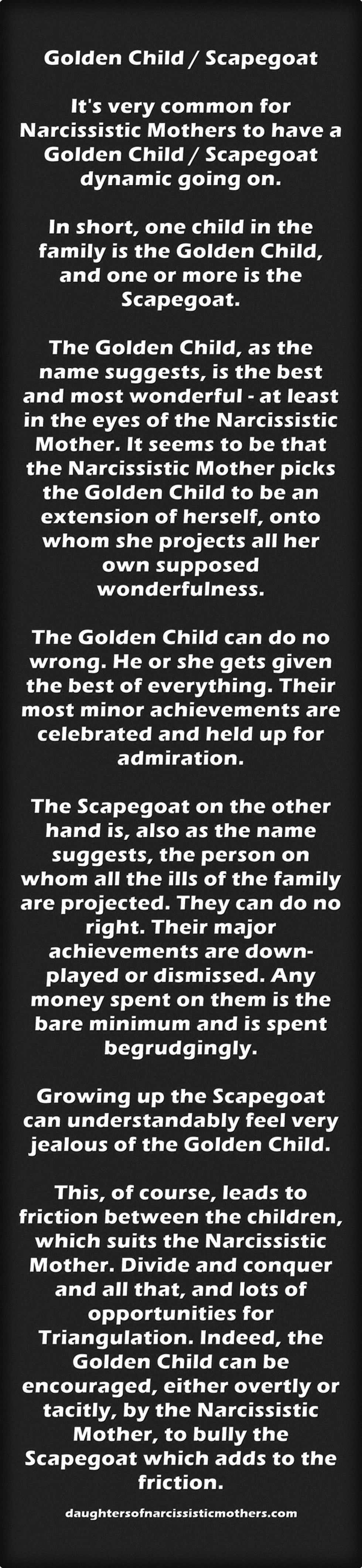 Both children are clearly being abused, but worse still is the damage done to the relationship between the siblings. The devastating dynamics of this situation form an abidingly acrimonious and cynical perspective between them. For both children, simply surviving is a daily goal. Should they ever finally escape the clutches of the narcissistic abuser, they will never however, escape the memories of their brother or sister being the one on the other end.