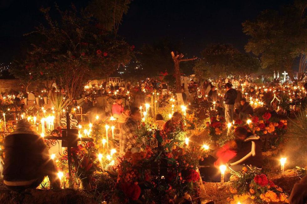 Creating alters in remembrance, offering the deceased their favorite foods and drinks, hosting a feast in the graveyard while cleaning the tombs of loved ones, singing and dancing, speaking to the spirits, painting faces like "calaveras de azucar" (sugar skulls) and many other fun things, all to celebrate life.