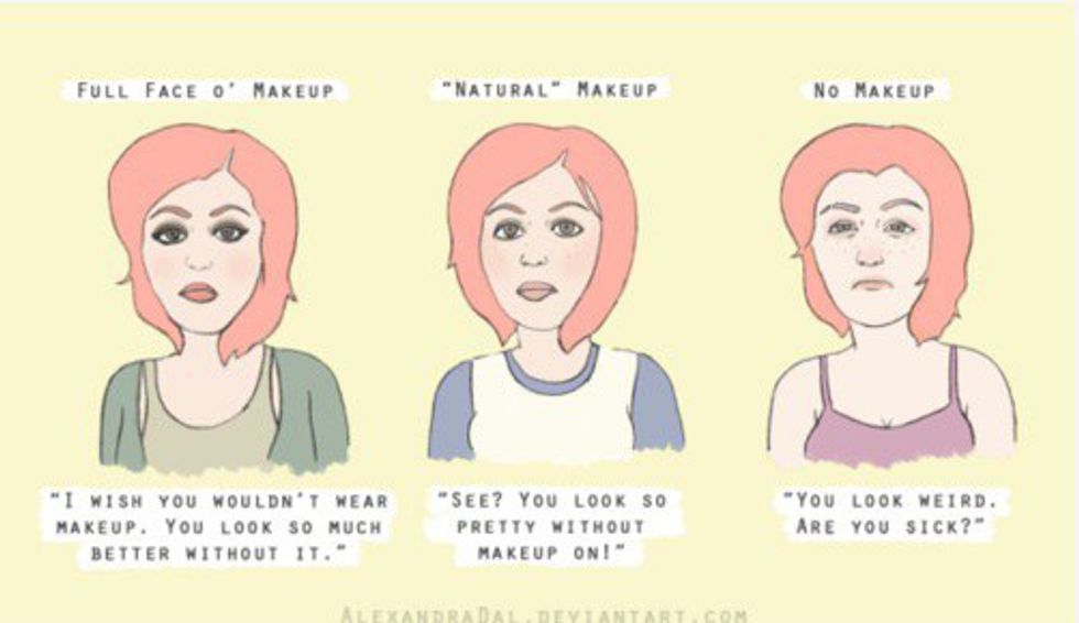 I remember reading a BuzzFeed/HuffPost type of article a couple months back about not wearing makeup in the work place. It was a week-long "experiment" to see how customers and coworkers would react to the sudden change in beauty routine, and it had pretty drastic results: the author was asked multiple times if she was getting sick, people assumed she was hungover from the night before and in general, she just wasn't taken seriously.