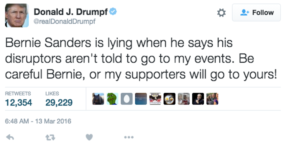 Bernie released this statement about the Trump rally in Chicago on March 10: