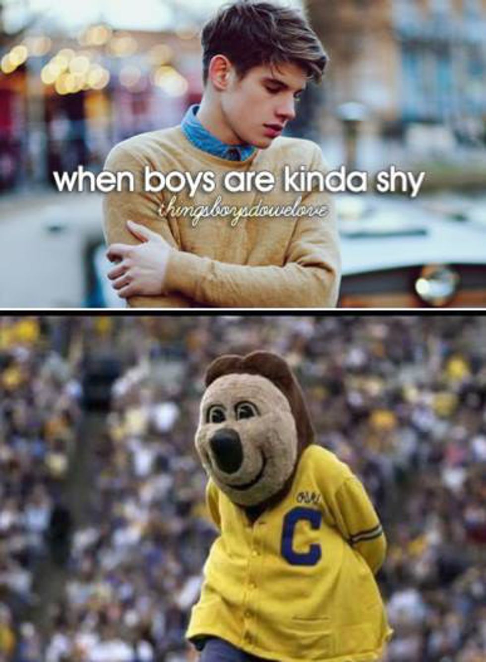 Oski the Bear is our school mascot who likes to stare into the fiery depths of your soul. Funny story: once, when I was walking with my friend/roommate in the night, I saw a set of dark eyes and a nose bigger than my fear of the dark charging at me. So, I did what anyone would do if they saw Oski at night: I screamed. Humiliating myself and insulting Oski, I patched things up with him, and I even gave him a hug because I felt so guilty. That’s how creepy he is.
