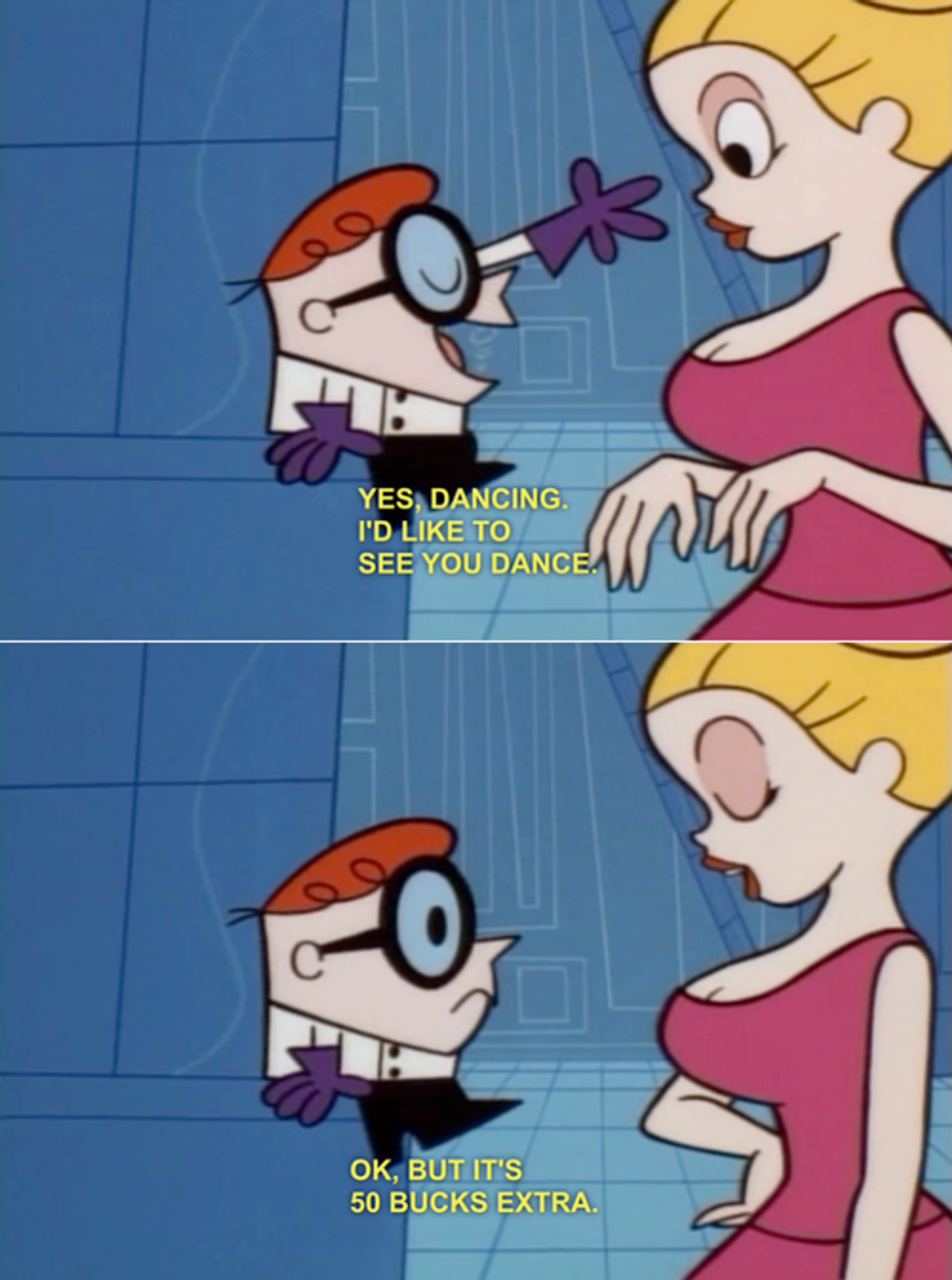 13. When Dexter "accidentally" hired a hooker in his laboratory.