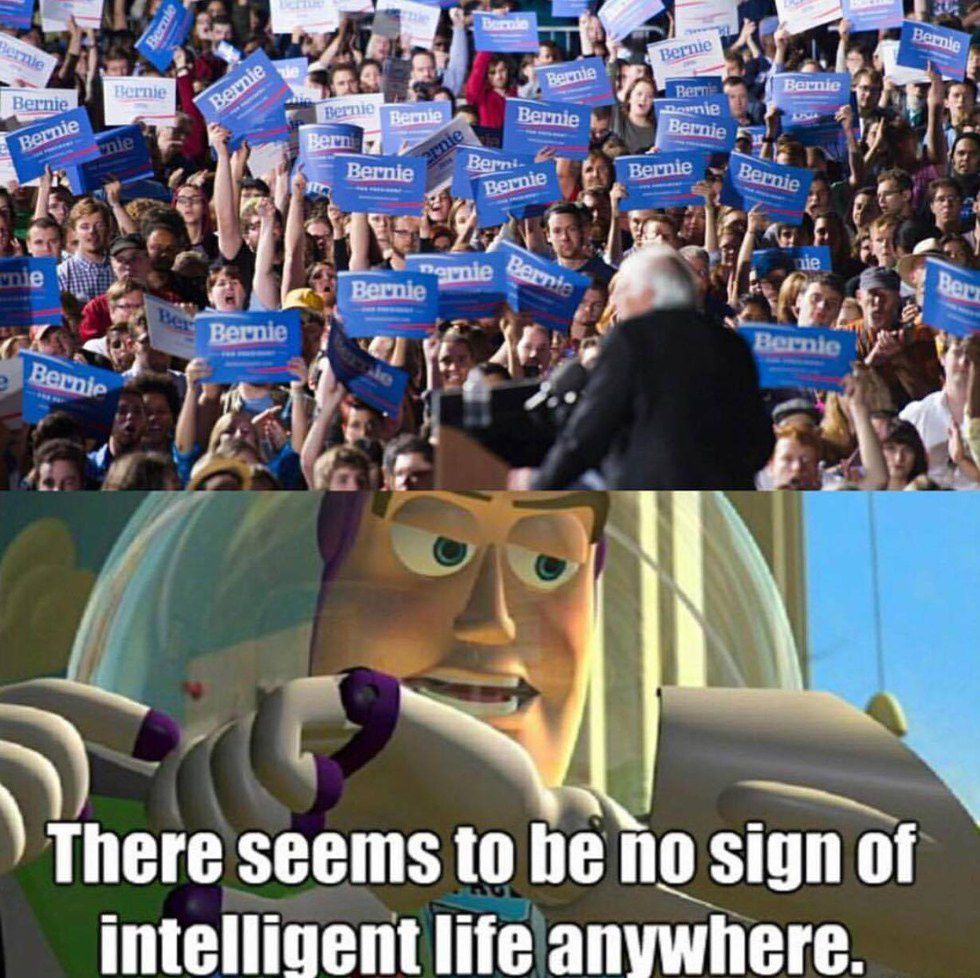 This post makes a political statement, sure. But it certainly doesn't give any reasoning other than an insult. Why does this person think Bernie supporters are idiots? What part of Bernie's political agenda is the person even disagreeing with? The world may never know. It accomplishes much more when people are able to articulate their views in a way that informs others of opposing ideas. Basically, just remember this: insults don't change views. In fact, they do the opposite. They make people believe that your political base is so childish that they cannot express themselves beyond, "You're wrong because I said so."