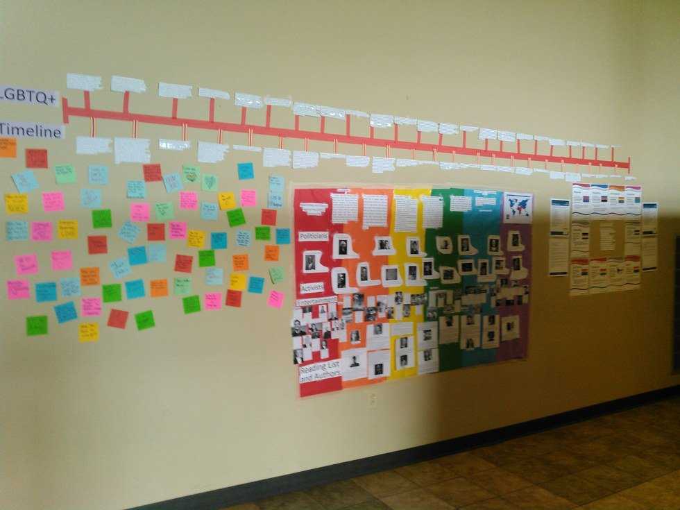 - Pride week had begun with a lot more repetitive incidents. Some of the members of BC Allies were being followed around, laughed at and had pictures taken of them. Allies had put up a rainbow background to one of the walls outside of the cafeteria with new information on it every day about the LGBTQ community and positive notes being put up. Every day this wall had been vandalized in some way. BC Allies posters around campus had also been ripped up along with the wall.