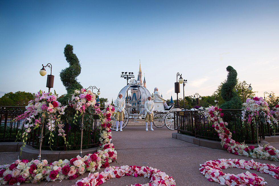Ever looked at the end of a Disney classic and thought to yourself, "Sheesh I bet that wedding cost a fortune." Well if you're anything like me then you certainly have, and boy let me tell you we were right as rain. You see Sunday, Walt Disney World in Orlando, Florida, announced that they would be offering wedding packages for anyone who wants to live our their own happily ever after. However, if your hoping to recite your vows in front of Space Mountain or any number of places across Magic Kingdom, you're a bit out of luck. Instead, Disney is offering their East Plaza Garden located right at the end of Main St. just in front of Cinderella's iconic castle.