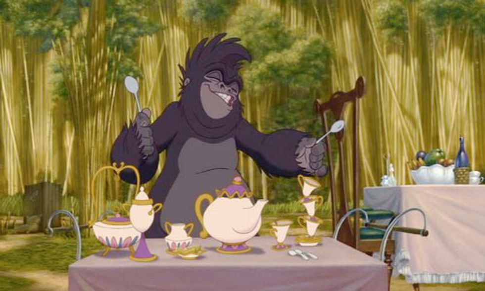 But how is a German Duke related to a French princess? According to publication dates, 'Beauty and the Beast' happened in the late or mid 1700s, while 'Frozen' is set in the mid-1800s. Between those two dates something very significant happened in history, the French Revolution. Prince Adam and Belle could have fled France and ended up in Germany. If you listen closely to the scene in 'Frozen', the Duke pronounces "Weselton" very differently than a native German would. The Duke is afraid of sorcery, which makes sense because his grandfather, Prince Adam, was cursed as a beast. But Jane is British, how does the Duke from Germany connect to England? The Duke could have gone to England during the Industrial Revolution, making him a pretty wealthy person, which would allow his grandson to be able to afford to travel on an African expedition. The Duke's grandson just so happened to take his daughter, who happens to own a very familiar family heirloom, a tea-set. Still confused? Basically this theory states that Jane Porter is Belle's great, great, great, grand-daughter.