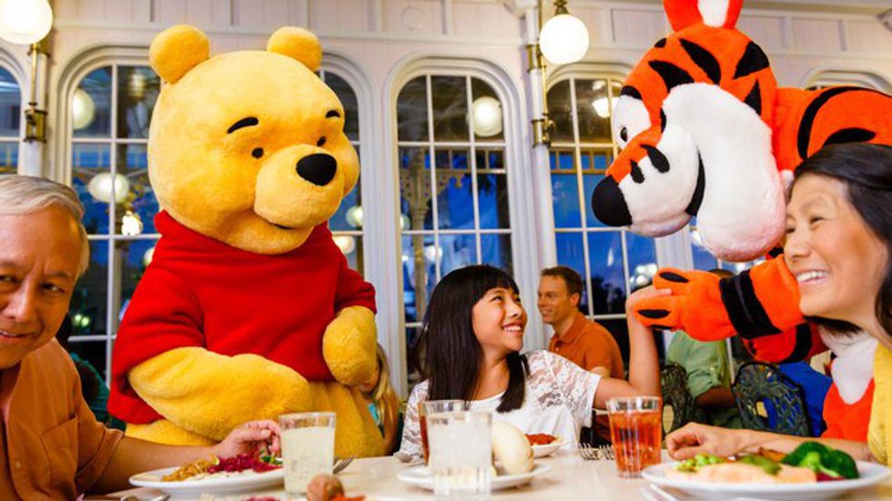 If you had kids, you need to go eat here. They'll get to meet every single character they've grown up to love. Mickey, Minnie, Pooh, Tigger, literally every cartoon from Disney comes to life there. This restaurant is located in Magic Kingdom and it's buffet style, so there's plenty of food to choose from. So dig in and don't be surprised when someone special walks by the table.