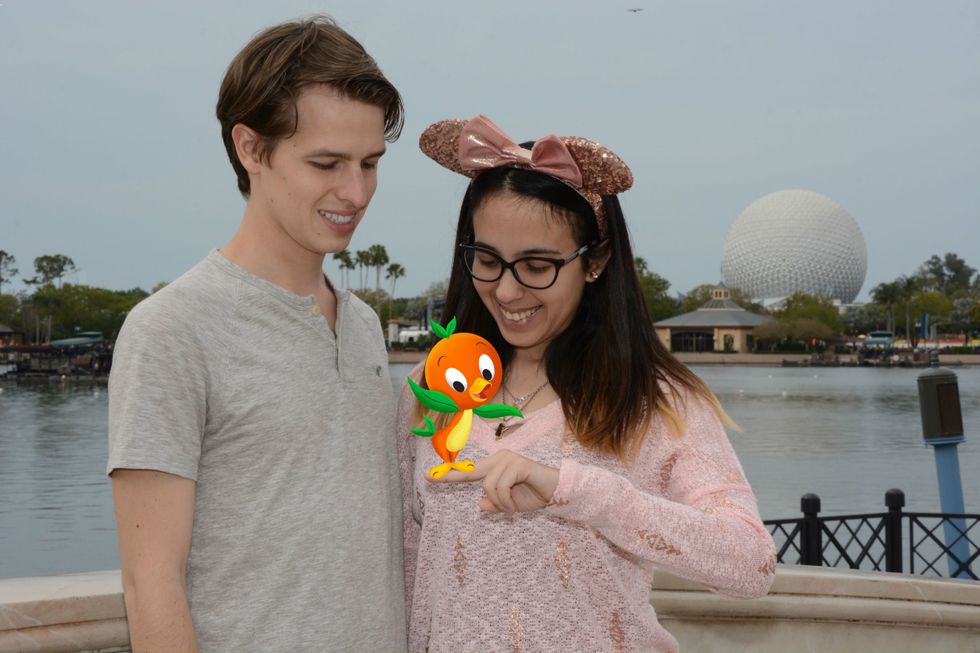 When you are taking a picture with a Disney PhotoPass Photographer they might ask you to do a strange but fun pose, usually looking surprised at the ground or amused at your arm. Once the picture is taken the magic happens and is added to your picture, this photo will appear on the app on your phone or available to be viewed at any PhotoPass Kiosk. Be patient with these as magic takes time and pictures can take five or more hours to be ready.Your picture will look something like this: