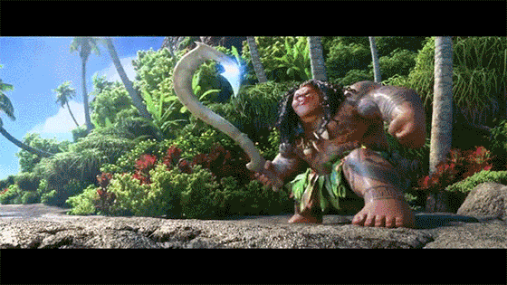 Second, I want to talk about the characters. Our heroin, Moana, has an amazing personality, large heart, and great story. I think she will be a great role model for young kids. The new young girl, Auli'i Cravalho, has an amazing voice and I can see her name get larger in the future. The next main character is Maui, played by Dwayne “The Rock” Johnson, was amazing. Lets just talk about Dwayne killing this role and showing his charisma even through only his voice. Maui was a narcissistic jerk actually, but because of his background story, great development, and humor, you really end up enjoying his character. My favorite part was his cool animated tattoos that he could interact with and continued to keep things entertaining.